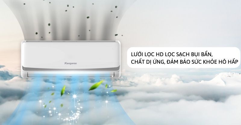 Máy lạnh Kangaroo 1.5 HP KGAC12CN được trang bị tấm vi lọc bụi HD giúp loại bỏ các tác nhân gây dị ứng như lông động vật, phấn hoa, bụi ẩn,… trong không khí, an toàn, đảm bảo sức khỏe hô hấp người sử dụng. Bạn và các thành viên trong gia đình sẽ tận hưởng được bầu không khí trong lành, mát mẻ mỗi khi máy hoạt động.